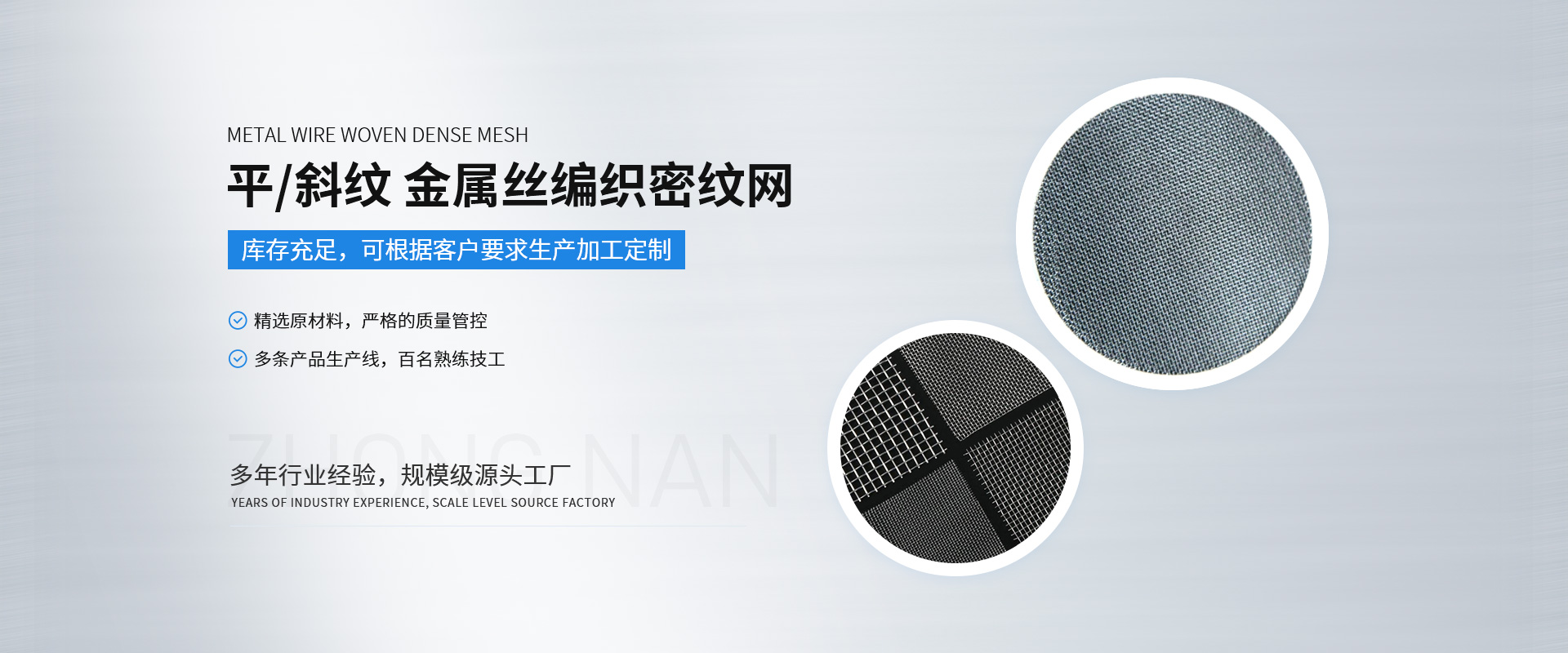 新鄉市中南金屬網有限公司成立于1999 年,公司設在河南省新鄉市。在過去的十幾年來,我們堅持以嚴格的管理措施、雄厚的技術力量、良好的工藝設施,質量上乘、信譽為上為原則,把樹立良好的企業形象為工作宗旨,歷經市場的嚴峻考驗并贏得廣大用戶的一致好評。金屬絲網編織結構形式有平紋和斜紋兩種方法,嚴格按照航空軍品標準HB1862—93和標準GB/T5330—2003標準,并等效采用國際標準ISO9044—90標準組織生產?! 」緭碛猩a設備和技術人員,主要生產不銹鋼篩網、磨料網、金屬絲編織方孔網、篩網、濾網 、篩分網 、過濾網、不銹鋼網、絲網、金屬絲網、金屬絲編織密紋網、特種網、不銹鋼密紋網、荷蘭網、席型網。絲網材質選用黃銅、錫青銅、不銹鋼、純鎳等。席型網規格7/44目—500/3500目,方孔網規格1/2目—500目,網孔25mm—0.028mm,產品廣泛用于機械、化工、化纖、石油、醫藥、橡膠、濾芯、固體果粒篩分、流體過濾以及裝飾、防塵、骨架支撐等?! ∥覀円浴耙曎|量為生命、以信譽求生存、以科技促發展、以優*產品為客戶服務”的經營理念,真誠的希望與各界人士攜手并進,共創輝煌!